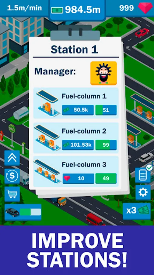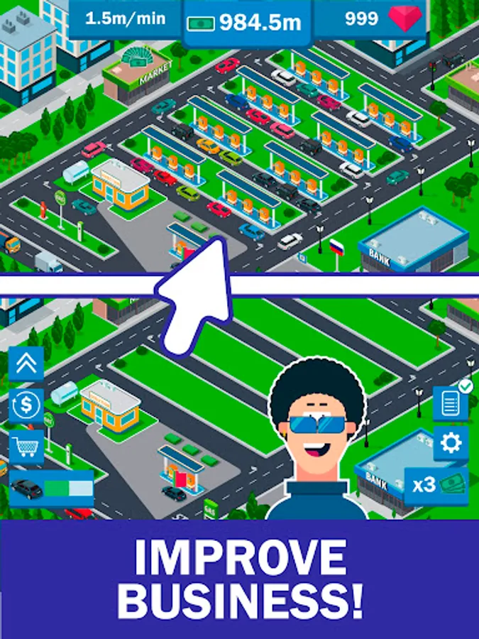 Become a fuel station tycoon, build an empire, earn more and more money, build a big fuel business, complete challenges and get rich in this idle tycoon simulator game where you can make money by building gas stations and investing on them for increase your income.