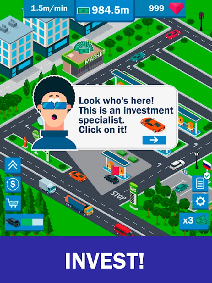 In addition to investing in the development of gas stations, you can participate in investments in startups. The investment manager will come to your station and offer options to invest money. Monitor the probability of profit and the probability of loss and make a decision about investing.