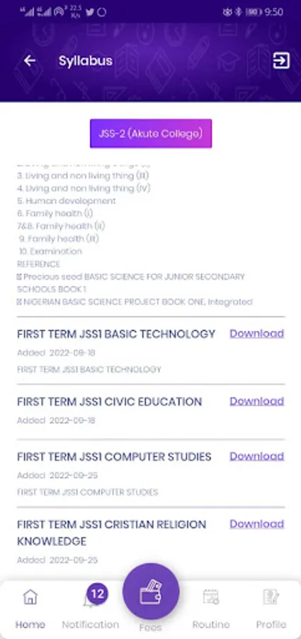 Student study material added (assignment ,syllabus, other download) notification to students