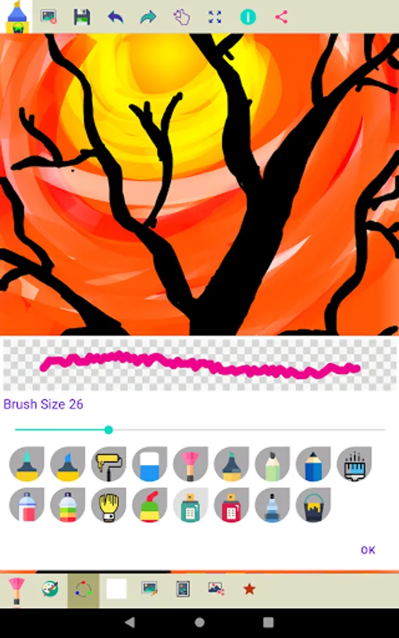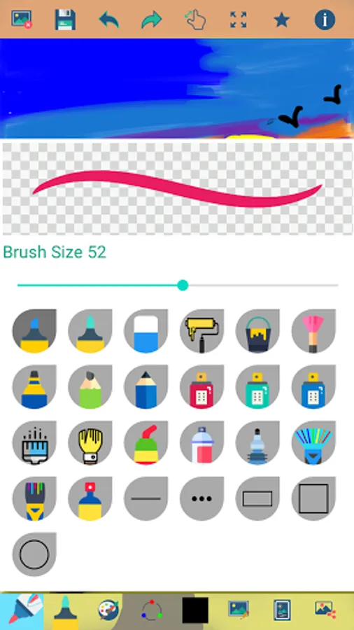 • Multiple brushes are available to draw beautiful drawings and customize your brush size.