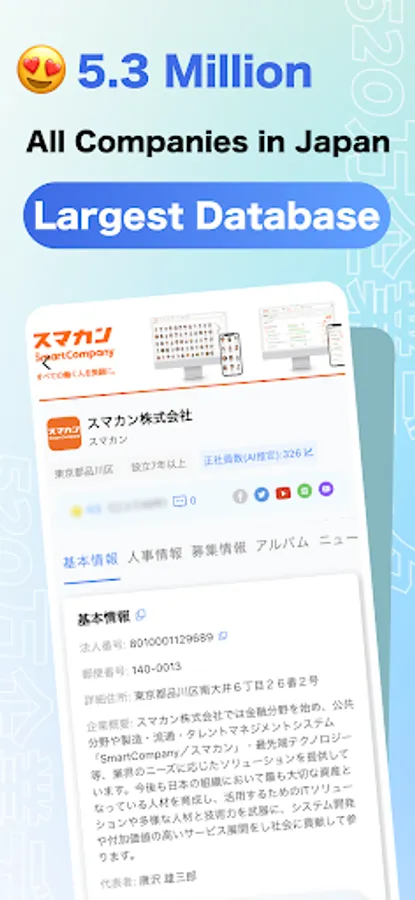 - What's more, we're proud to be the first in Japan to offer free access to an AI-estimated number of regular employees based on our unique algorithms, giving you valuable insights into company size and stability.