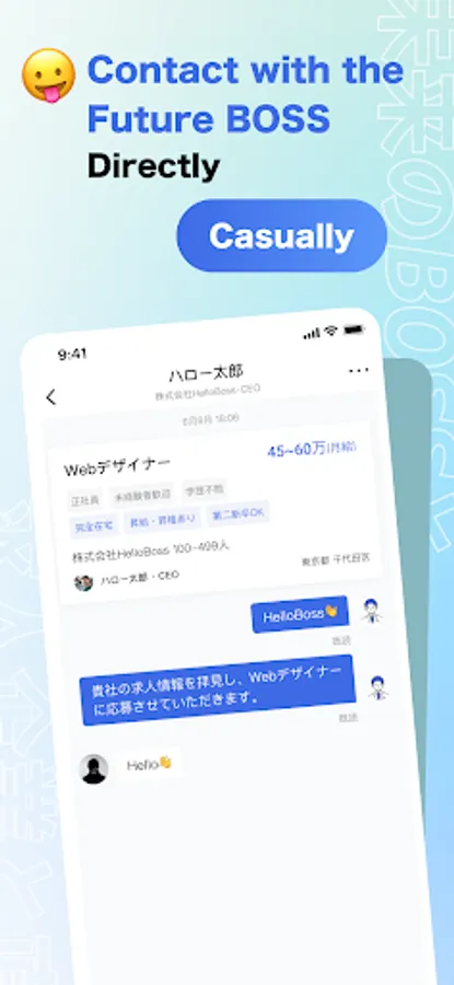 Hello and welcome to HelloBoss, the revolutionary third-generation hiring app, which leverages AI to connects companies in Japan and job seekers from around the world.