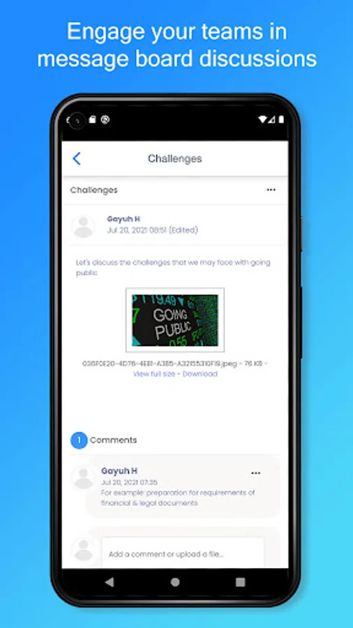 Integrated Files section allows users to add files from plans, chat, or individual activities. Edit, share, and store all the important project documents - files are automatically saved and organized in a folder for each respective projects, with customized personal file folders available as well.
