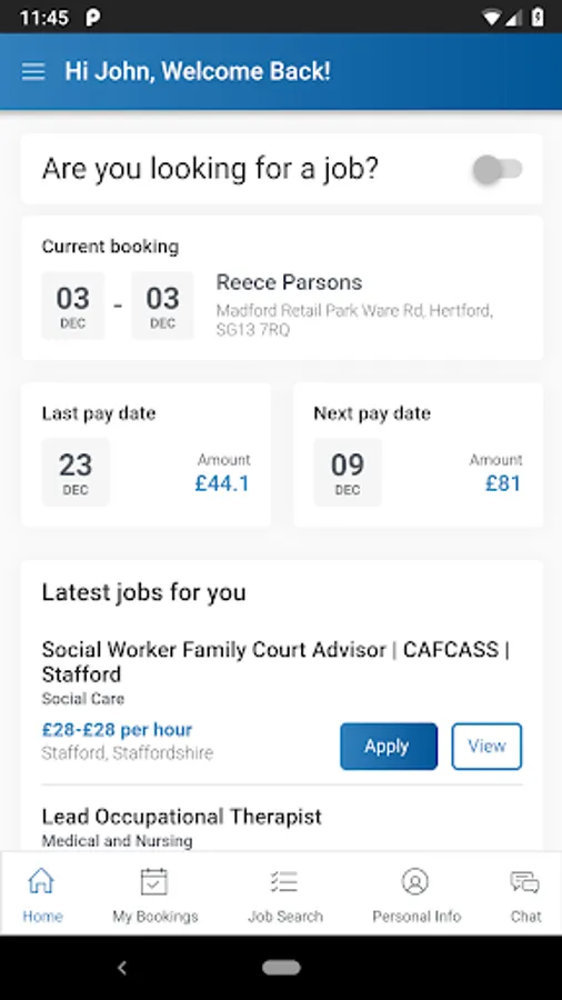 GCS UK is an app that allows candidates to view their recruitment profile with our business that includes compliance status, previous timesheets and payments made, timesheets due to be paid to them and new jobs they can apply for.