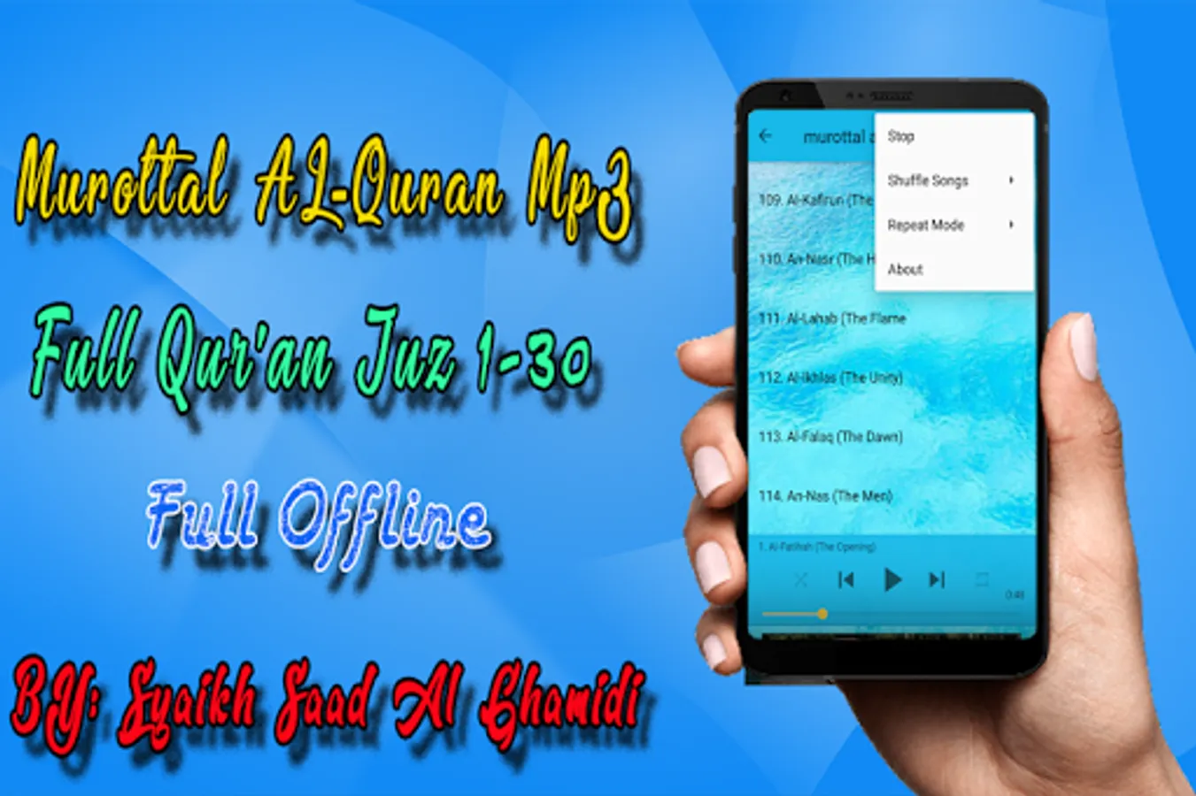 Full mp3 application with 30 quran qori SYAIKH SAAD AL GHAMIDI and also is 100% offline so you can play this app anytime and anywhere, may make blessings in our life amin, let's just download and renungi every sentence of the holy verses of the Qur'an .