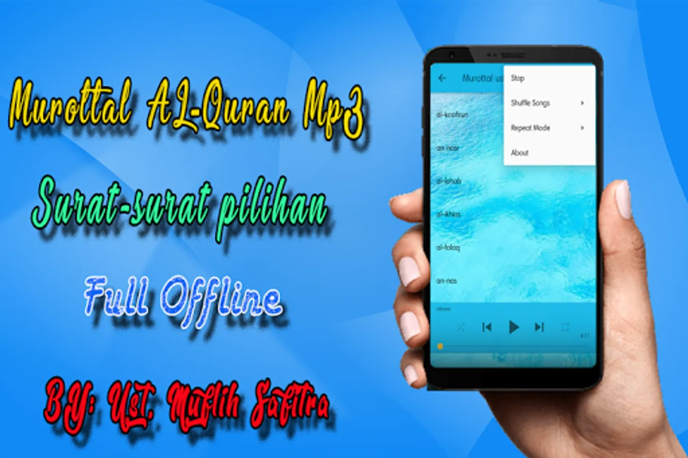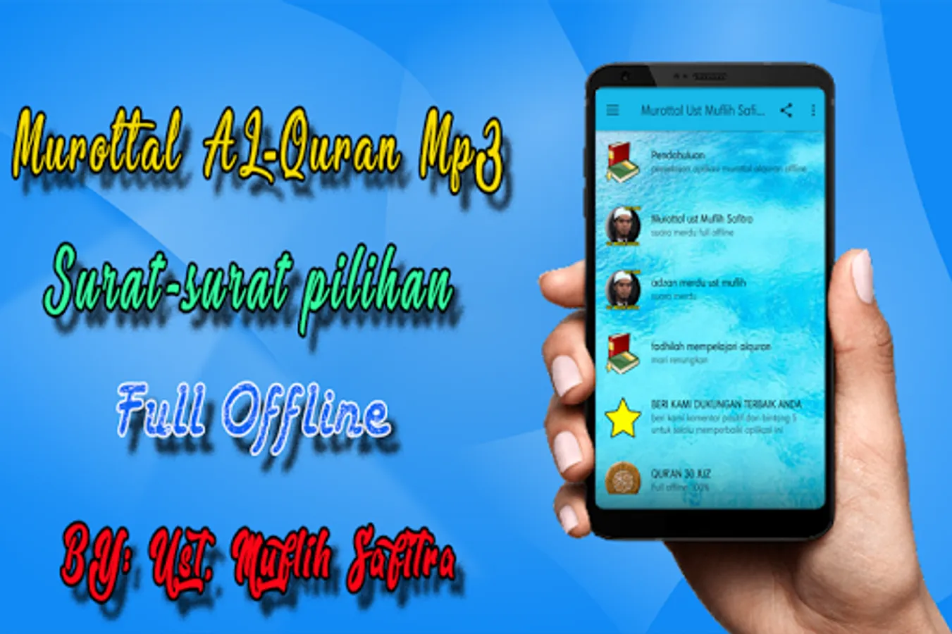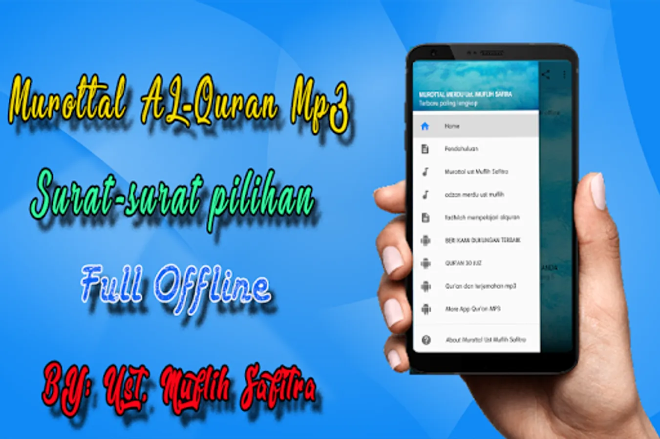Alquran mp3 application selection letters with qori USTADZ MUFLIH SAFITRA with a melodious sound that is also 100% offline so you can play this app anytime and anywhere,