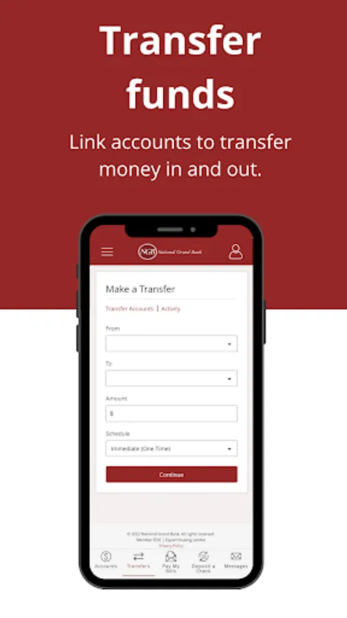 Easily access all of your accounts and features right at your fingertips with our mobile app. Manage your accounts, deposit checks, make transfers, pay bills and more!