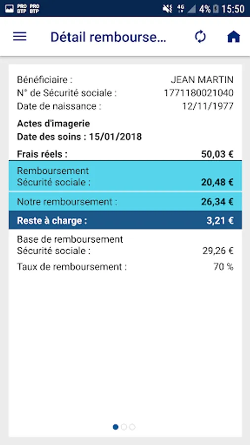 Before incurring an expense, you can perform a simulation to know the reimbursements of PRO BTP and the amounts remaining your responsibility.