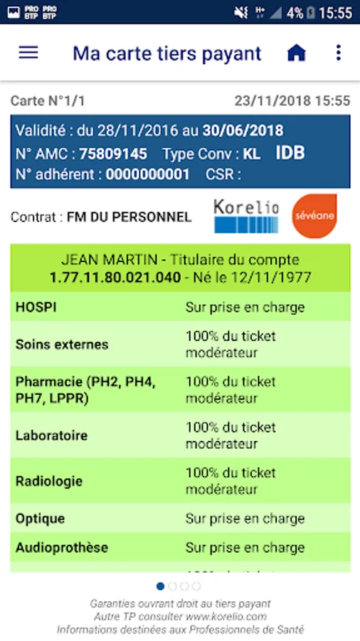 You can present it to partner health professionals and send a certificate to those who apply. In case of loss, you can also request a reissue of your card for the current validity period that you will receive by mail.