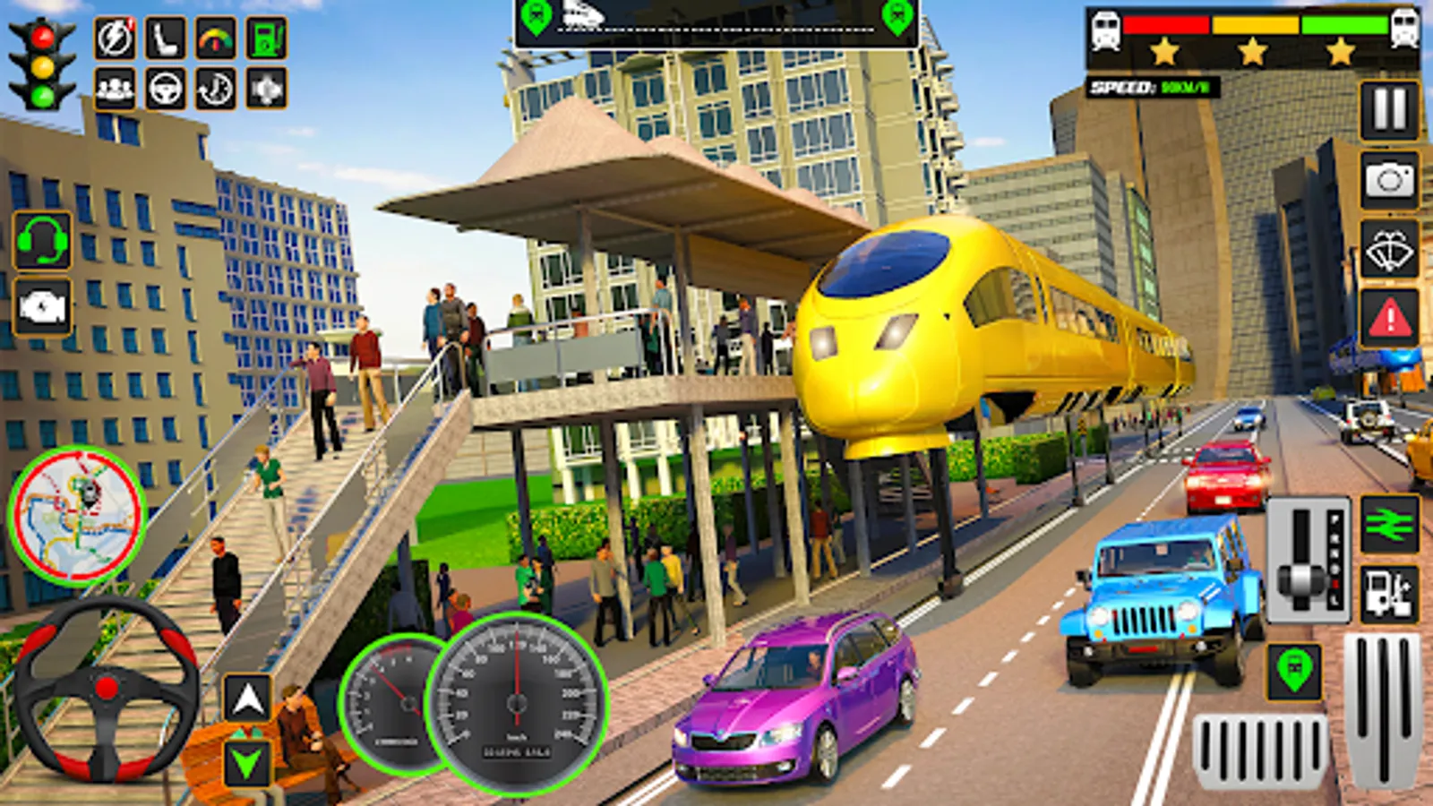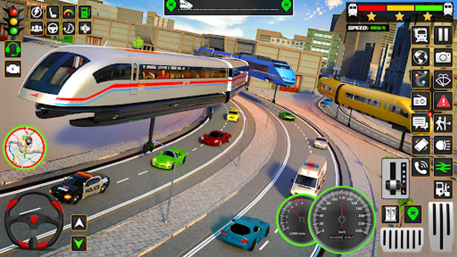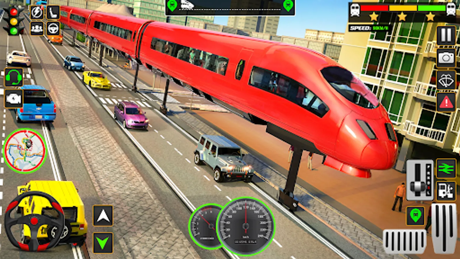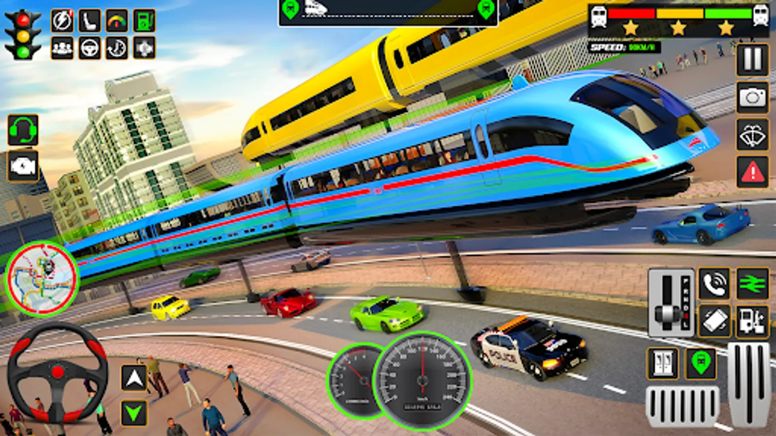 Gyroscopic modern train simulator has multiple levels where you need to pick and drop passengers safely driving train carefully. The next task is to park train properly on the pinned locations for passengers. Gyroscopic simulator train games has impossible tracks where high speed can cause turbulence in the train. Train racing on railway tracks is very exciting with gyroscopic train simulator train games. Driving passengers to their destinations and unlock more exciting gyroscopic trains in future train driving simulator driving games. Gyroscopic train city driving has a tricky parking aslo, where you parking skills will be tested. This train driving sim is different from other driving games and has a unique interesting gyroscopic gameplay. Take your metro train throughout the city and drive above the traffic in the city. There is no fear of smashing into the traffic as if you are driving above the traffic.