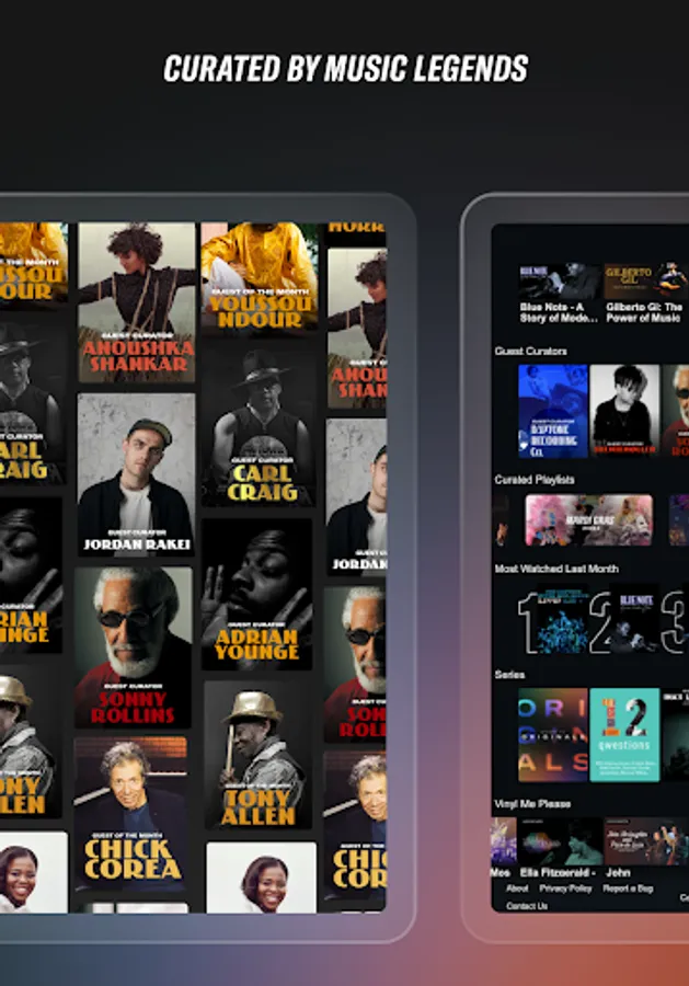 Features hundreds of concerts, documentaries and archive gems all in HD, showcasing your favorite artists from jazz, soul, funk, R&B, hip hop and music from around the world.