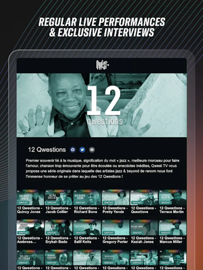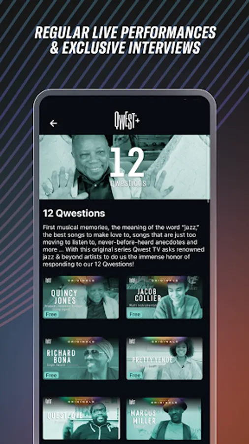 Qwest TV by Quincy Jones is a place that celebrates talents, traditions and rhythms. It respects the richness of music and jazz history, while shining a light on today’s best artists from around the world.