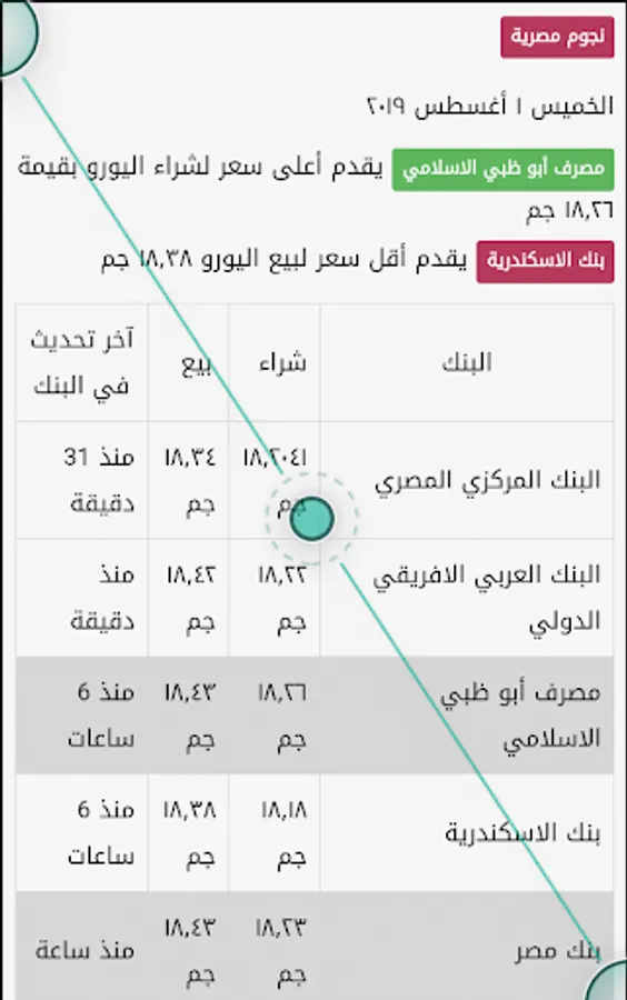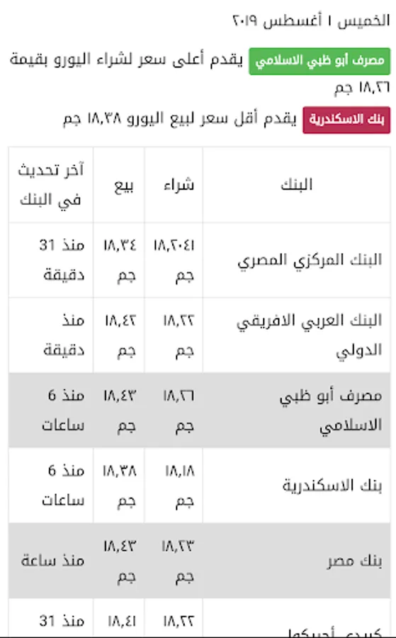 Immediate update of online bank rates for the euro in Egypt, all on one page.