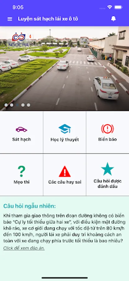 Ngoc Ha car driving test review application, developed by Ngoc Ha Driving Test & Training Center (under Ngoc Ha Intermediate School).
