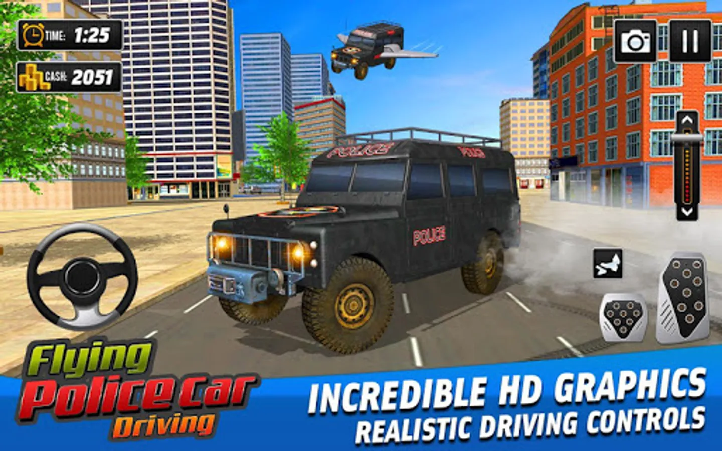 If you love futuristic flying car games and want to be the police car driver in the police car games than real flying police car chase is only for you because you have chance to fly grand police car simulator to chase the thief. Make police car chases possible by police car driving as a real flying car simulator in the flying police car driving game. Accomplish your duty as car police flying and shooting master to chase the thief. Win police flying car racing held between police cars. Enjoy the real flying car adventure in the flying police car chase game