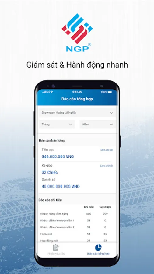 Nguyen Gia Phat management software is the pioneering software that helps NGP's managers to operate the commercial vehicle & passenger car business model more efficiently. In addition to being able to manage the sales team to work on schedule and achieve the set goals, Nguyen Gia Phat management software can draw a full picture of the operating company to have effective strategies. realistic and timely action strategy.