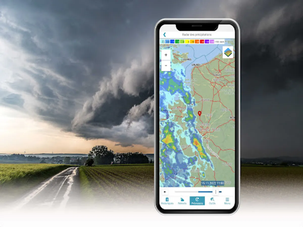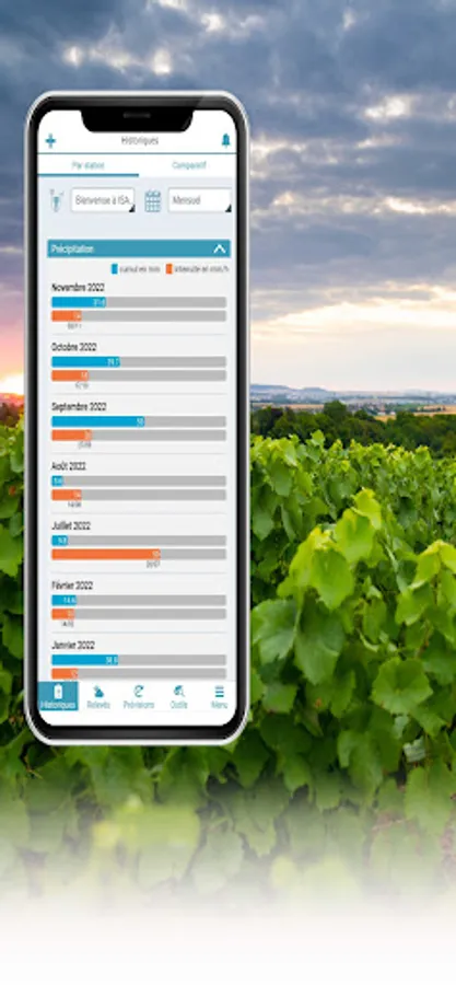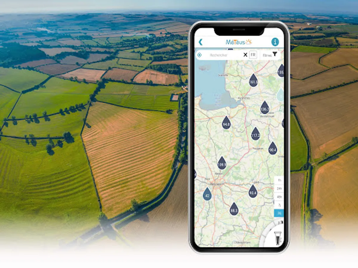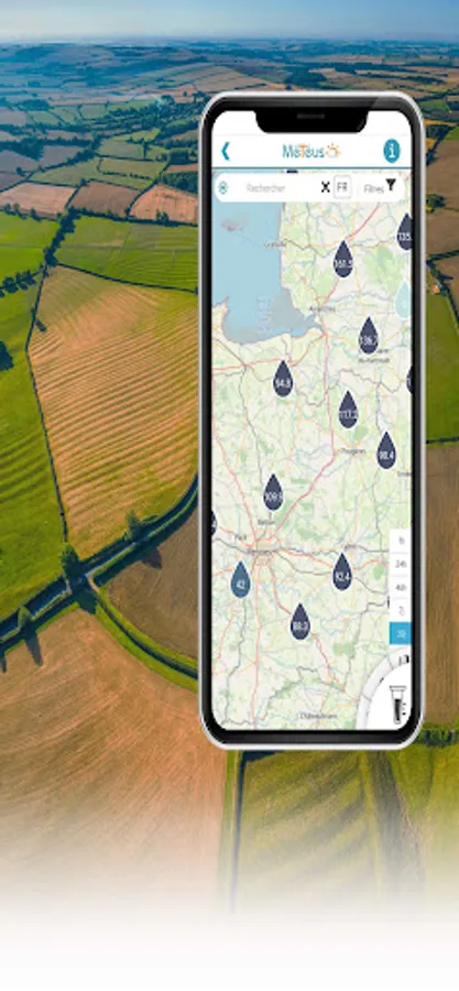 The Meteus application allows you to access the weather data of the stations of all members of the Meteus network, close to your home and everywhere in France. You thus have, without moving, the real weather conditions of your fields at 10, 20 or 30 km from your home ! This way you can easily compare the weather conditions of your favourite stations and optimize the organization of your work sites.