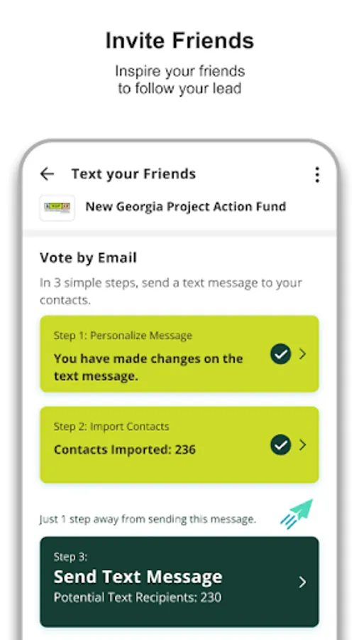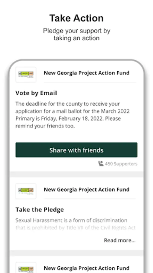 New Georgia Project is a 501c3, non-profit, nonpartisan organization dedicated to building power with and for what we call the “New Georgia Majority.” That means Black, Latino, and Asian communities, women, young people, LGBTQ+ Georgians, and others who have been systematically oppressed or neglected throughout our history.NGP Act!vate is the next step in that process giving you the tools to help us build a new Georgia that works for everyone.NGP Act!vate brings the power of relational organizing and personal networks to the Peach State – putting you in the driver’s seat. With this app, you’ll be able to: