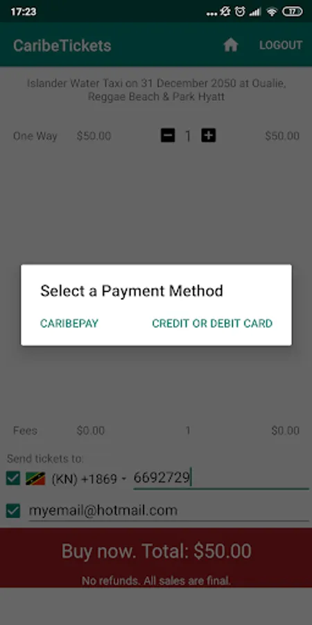 This app works any place, any time, and allows customers to pay for tickets using credit or debit cards, PayPal, or CaribePay.