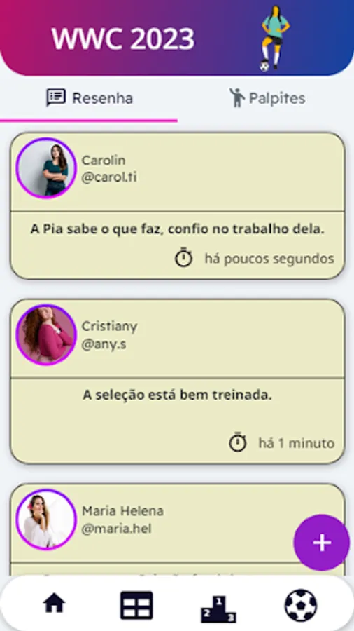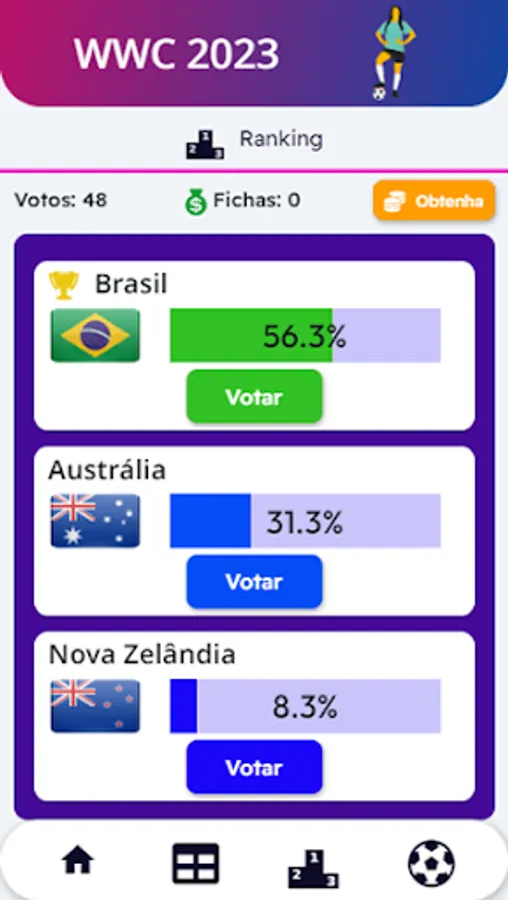 The application aims to bring together sports fans, football fans to express their opinions, kick the score, review the games without having adverse opinions. In addition to bringing a ranking of the selections and you can decide which selection will be champion, THAT'S RIGHT you will be able to vote on which selection you think will be champion of the 2023 Women's World Cup.