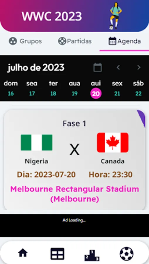 The WWC - Mundial Femenino 2023 application brings complete coverage of the Women's World Cup 2023, tables of each group, Filter games by phase or date of the match, containing live scores and statistics at the end of the game