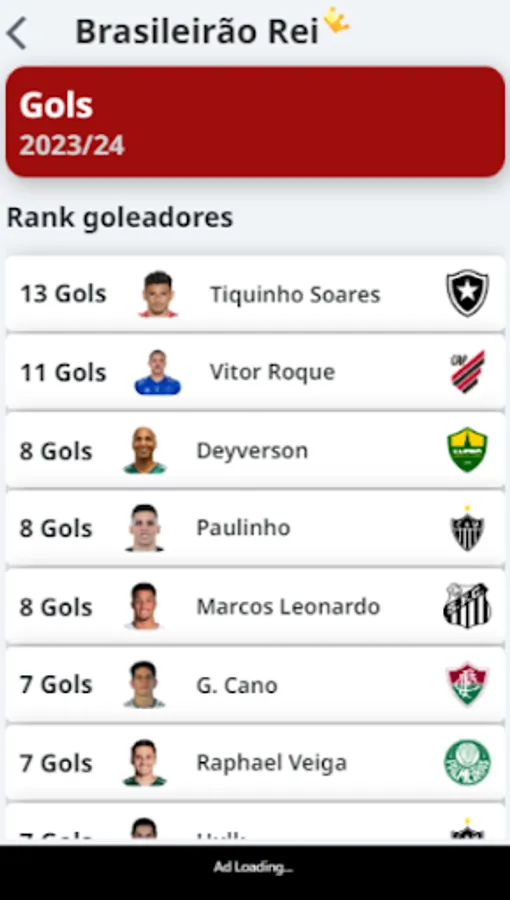 Brasileirão Rei - It is an application for fans of the Brazilian championship, see live scores from the Brasileirão 2023, it is the application that will allow you to follow the games of the Brazilian Football Championship, see previous matches, upcoming matches, detailed events, team lineups , team ranking table, ranking with the season's top scorers, score predictions for those who like betting, match predictions, and an insane quiz about curiosity and questions about your favorite team!
