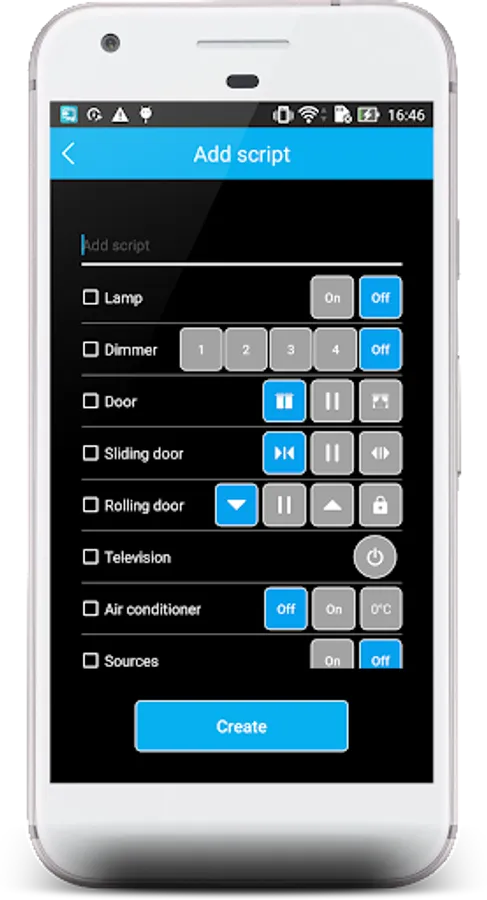Ora application allows users to control lights, fans, air-conditioners, televisions, curtains, sliding doors, shutter doors; view cameras; create scripts; alarm; security; decentralization; transmit data,.... All of them is monitoring on Smartphone through local wifi or internet, 4G, 3G.