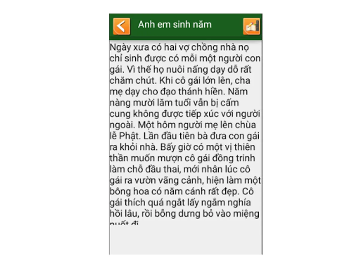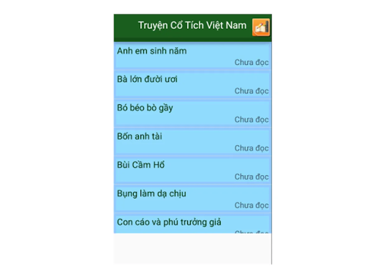 Like all peoples, nations around the world. Vietnam also has mythological art and the fascinating myth. With rich imagination, artless simplicity they knew posed lyrics, stories and circulation of works in the form of mouth. This application gathers some stories that we could relax and read further for more knowledge of fairy treasure of yourself.