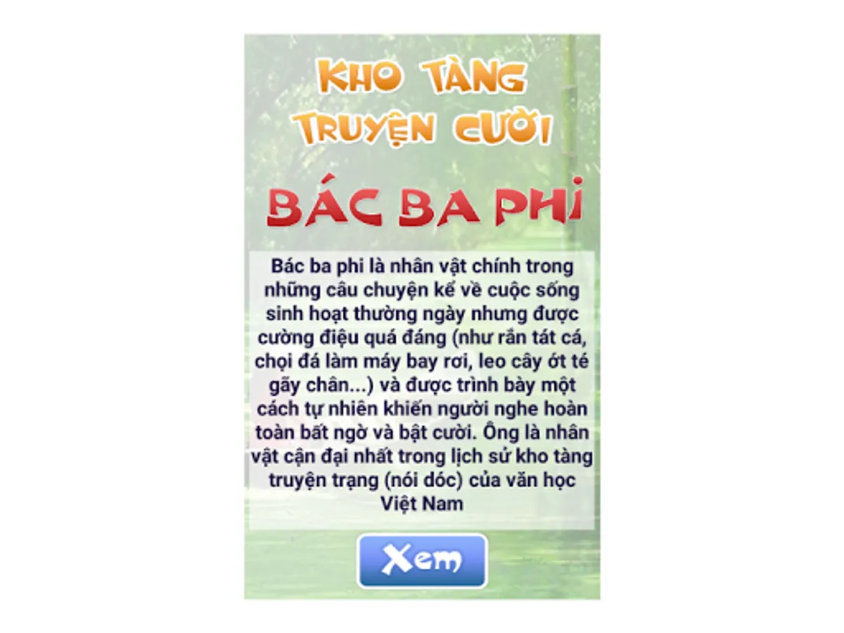 Doctor fees are three main characters in the story of life on daily life but exaggerated excesses (like snakes all, play rock do crash, broke his leg climbing fall peppers ...) and is presented in a natural way that people listen to completely surprise and laughed. He was the most modern in state history treasure story (lie) of literary Vietnam "