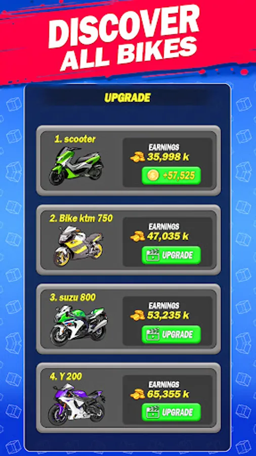 Get ready for a merge bike simulator bike game. Play the merge bike games with its crazy features. Keep on merging the bikes and make a monster bike extreme with it. Make a crazy bike extreme after merging a lot of small bikes in it. Find the best camion in off-road games 3d and merge bike rider, which can help you make more money. Become rich and spend money to unlock more crazy monster bikes in merge bike games 3d. Unlock new Monster bikes and upgrade to add advanced level fun.