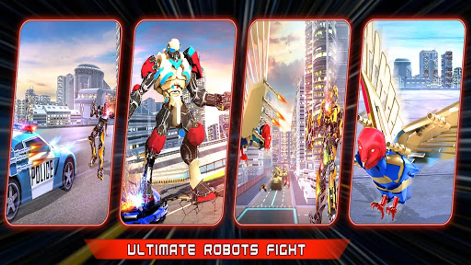 Flying owl with multi robots transforming in mech robot wars and steel robot transforming of latest dino robot games. Multi robot transformations games new era in super robot attack of robot car, car robot, jet robot, owl robot and transforming animal attack games with team battle. Enjoy future battles with team shooting games with ultimate transforming car robot and robot transforming games. This new robot wala game and robot fighting game is the super action games where we are going to present expertise in a multi robot car transforming game of unique ideas with a combination of tank games.