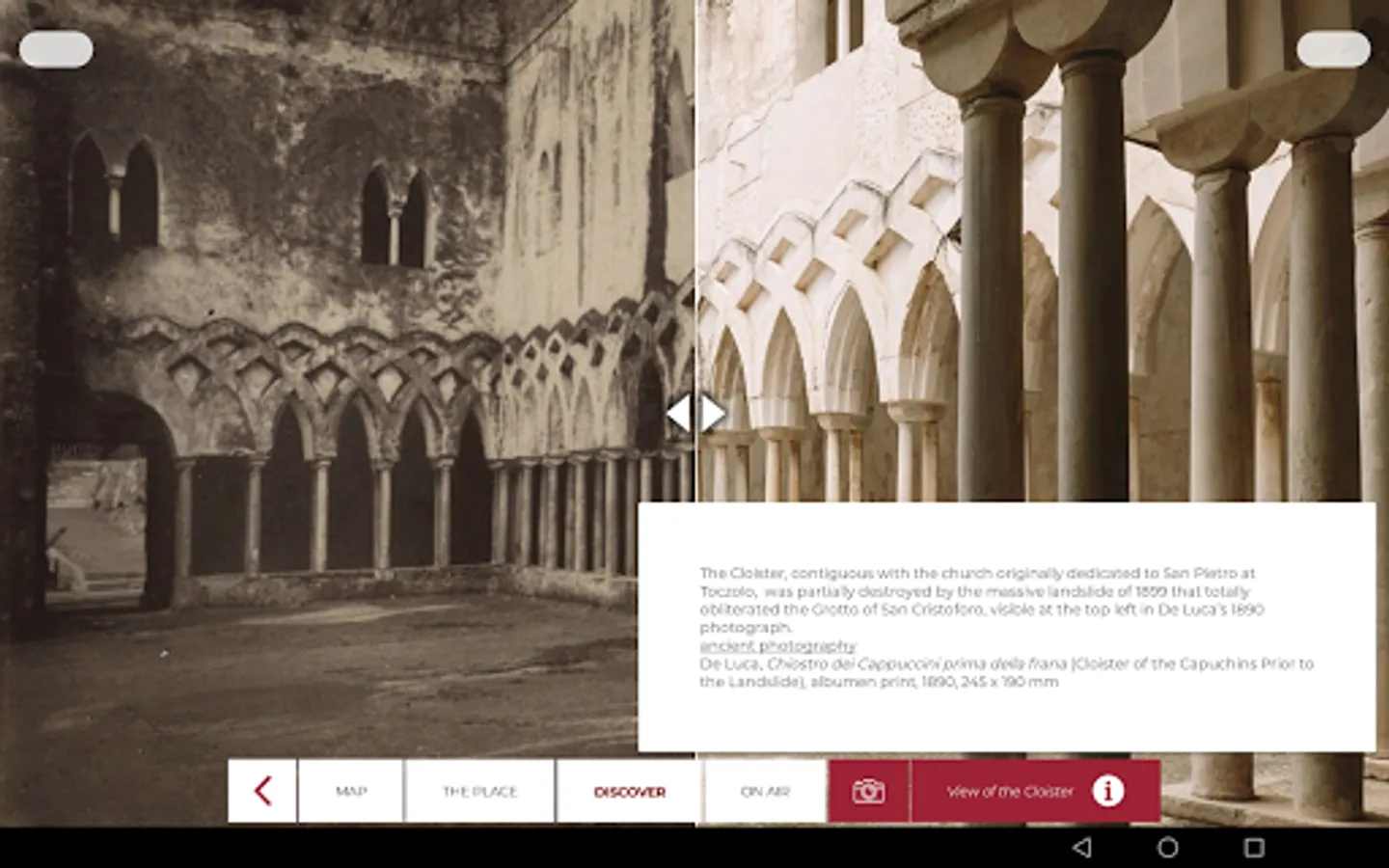 Discover. Immerse yourself into the historical pictures of the Convent and live an extraordinary augmented reality experience. Relive the daily routine of the Cistercians monks or compare past and present through the virtual reconstruction of the ancient collapsed cave.