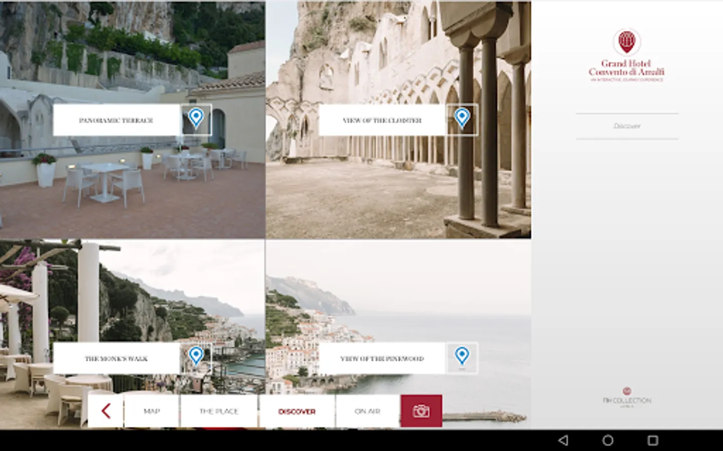 The Grand Hotel Convento di Amalfi app gives you the chance to live an extraordinary digital journey experience, enabling the following interactions on your Smartphone and tablet.
