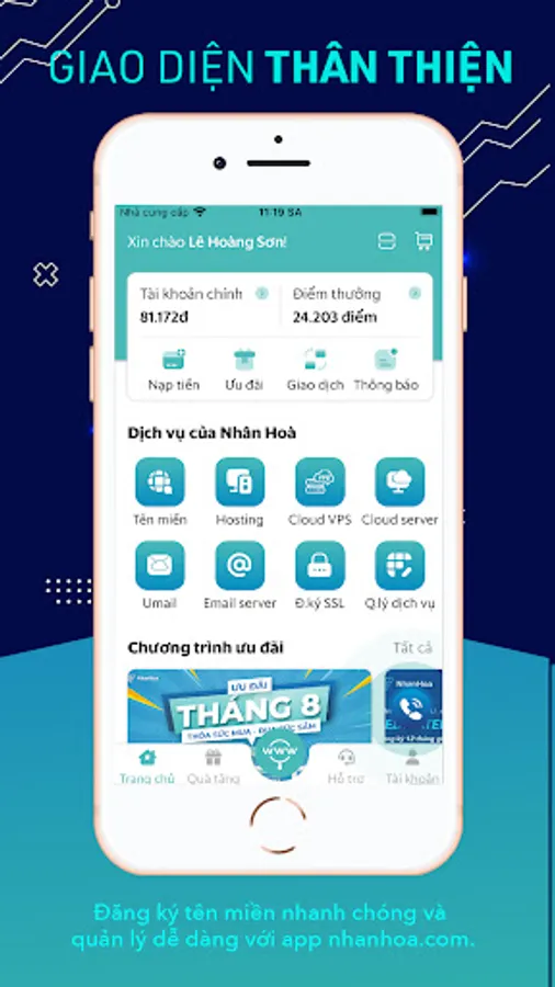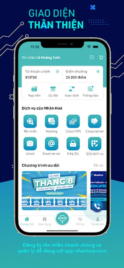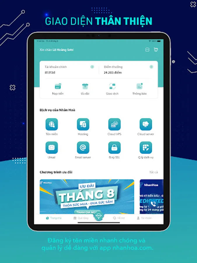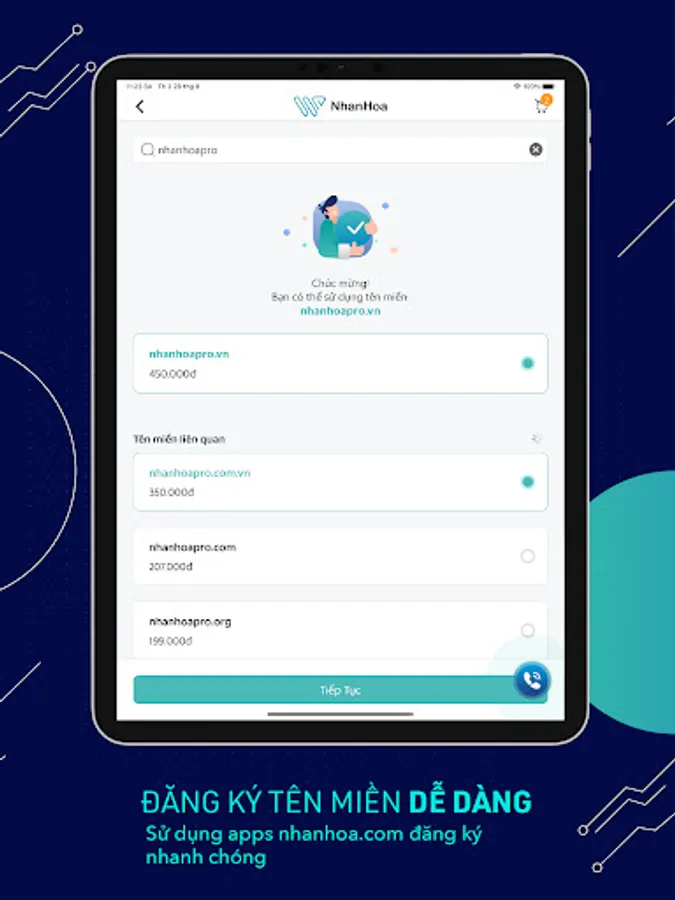 - Nhan Hoa application is free to use for domain name services of enterprises.