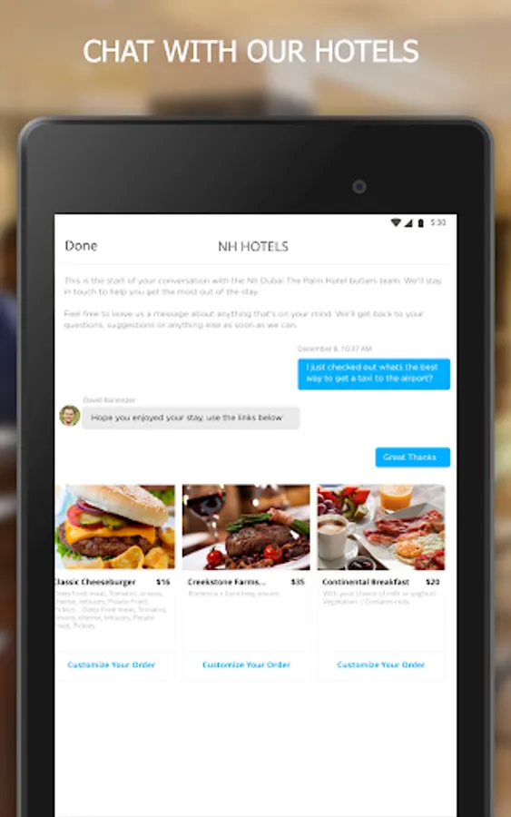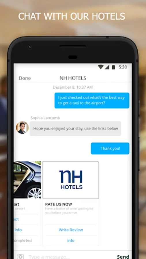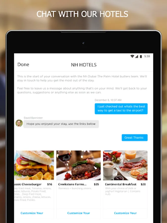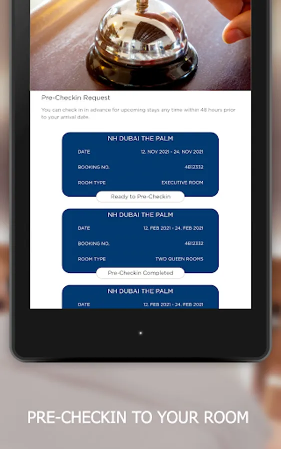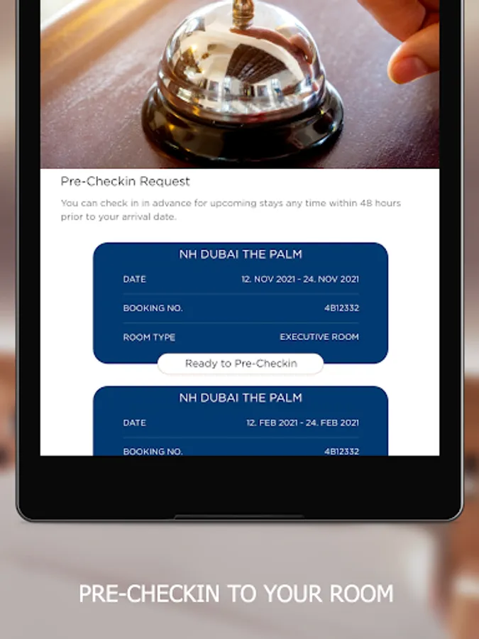 The app is also the perfect companion during your stay. Unlock a host of features and services in your room and around the hotel, such as booking restaurants or spa treatments, ordering room service, redeeming NH DISCOVERY loyalty rewards, and more.
