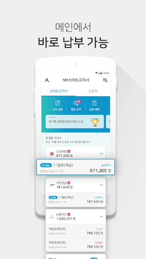 Use the electronic notification app created by NH Nonghyup Bank, NH Smart Bill.