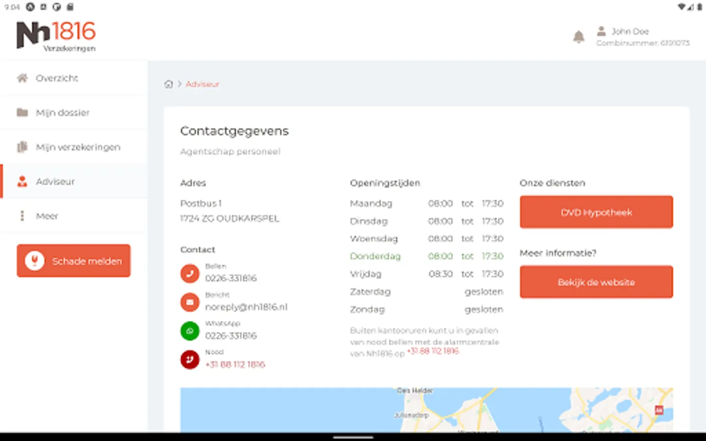 With the VerzekeringApp you always and everywhere have your Nh1816 insurance information, such as insurance certificates, policy schedule(s) and claim files, at your fingertips. You can also easily report damage here or contact your adviser. As an Nh1816 insured person, you are automatically a member of the cooperative. As a member you will find an environment in the VerzekeringApp to generate a unique discount code for member benefits. Install the Insurance now!