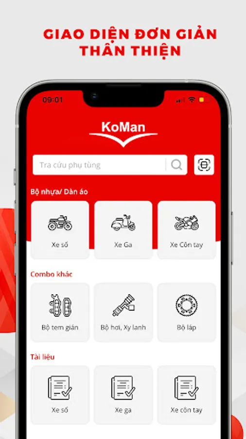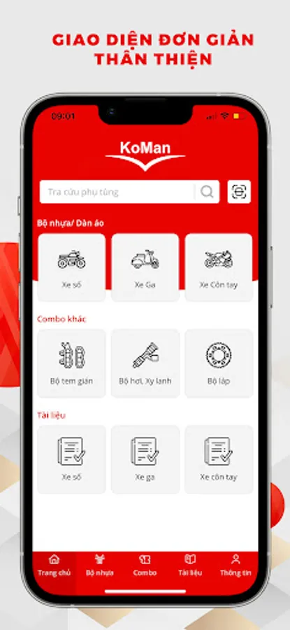 PTXM KoMan application to look up, order Honda motorcycle parts, works on all internet systems such as wifi, 2G/3G/4G,...