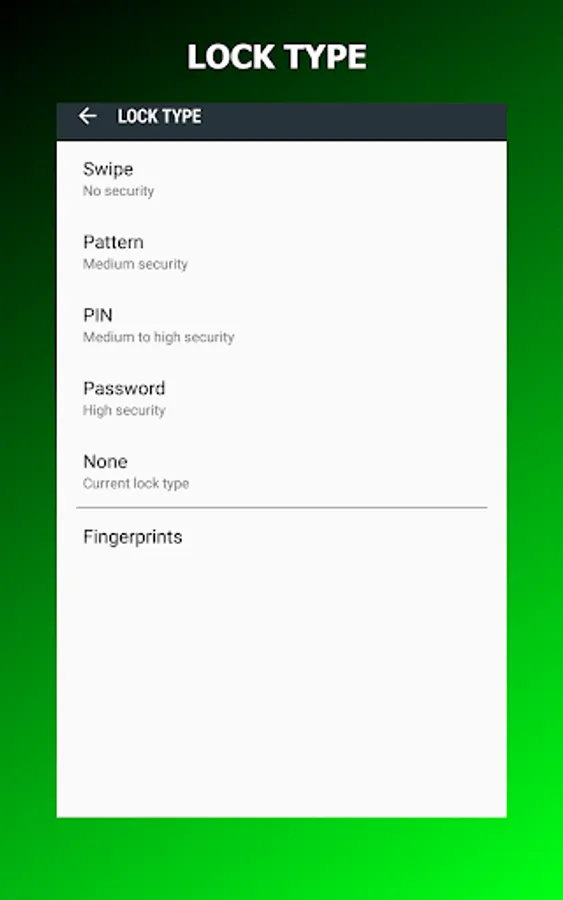- Multiple locking methods: Swipe, Pattern, PIN, Password