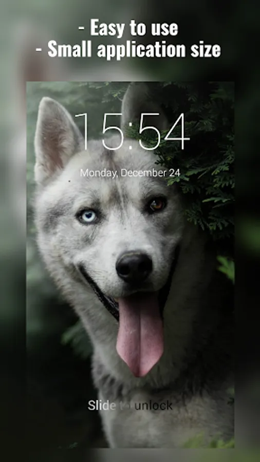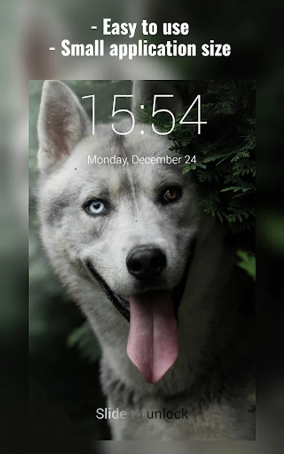 We present you "Siberian Husky Lock Screen" is one of the easiest to use and best Lock screen for enhanced security.
