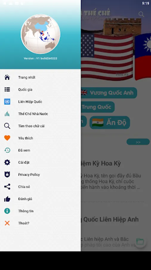 The application will help you understand more about the functions, duties and powers of political organizations and parties of countries around the world.