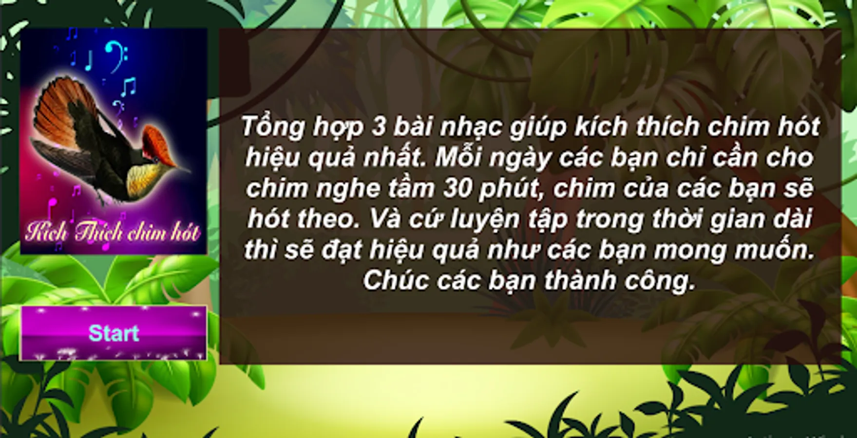 Synthesize sounds to help birds sing along. You need to open each day for about 30 minutes for the birds to hear, they will sing along. Open this app and feel the results. Here are 3 songs that help birds sing best.