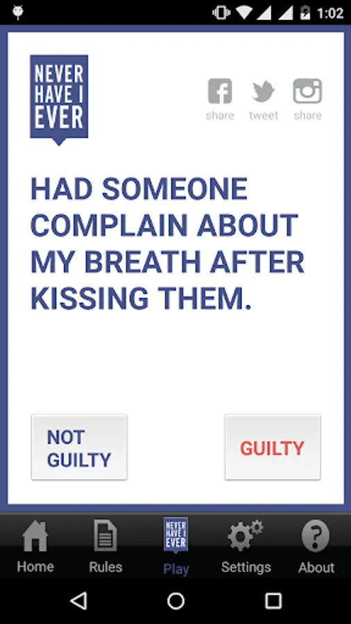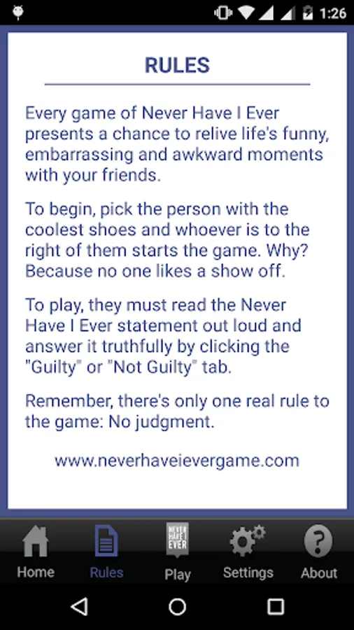 This game is all about the players! Try to find as many fun and crazy players as you can, because the more they've done, the more fun you will have. And when, they've done something, they have to take a drink. So, get ready to laugh at each other's past actions and embarrassing moments.