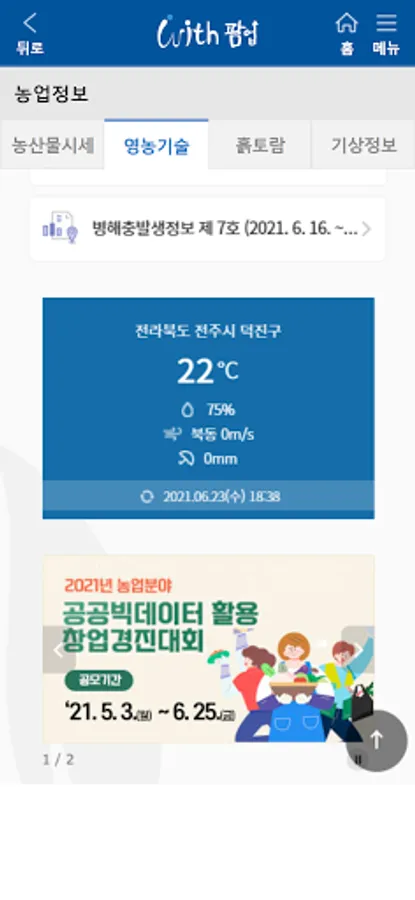 > Check agricultural and fishery product prices, agricultural technology information, soil environment information, and weather information