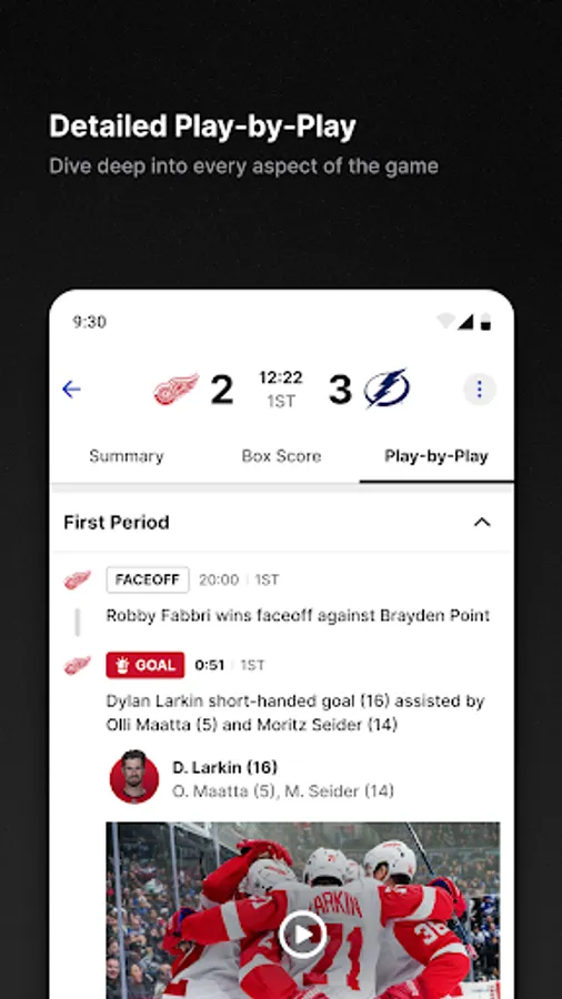 • Stay up to date with every team’s scores, schedules, standings, videos, and rosters