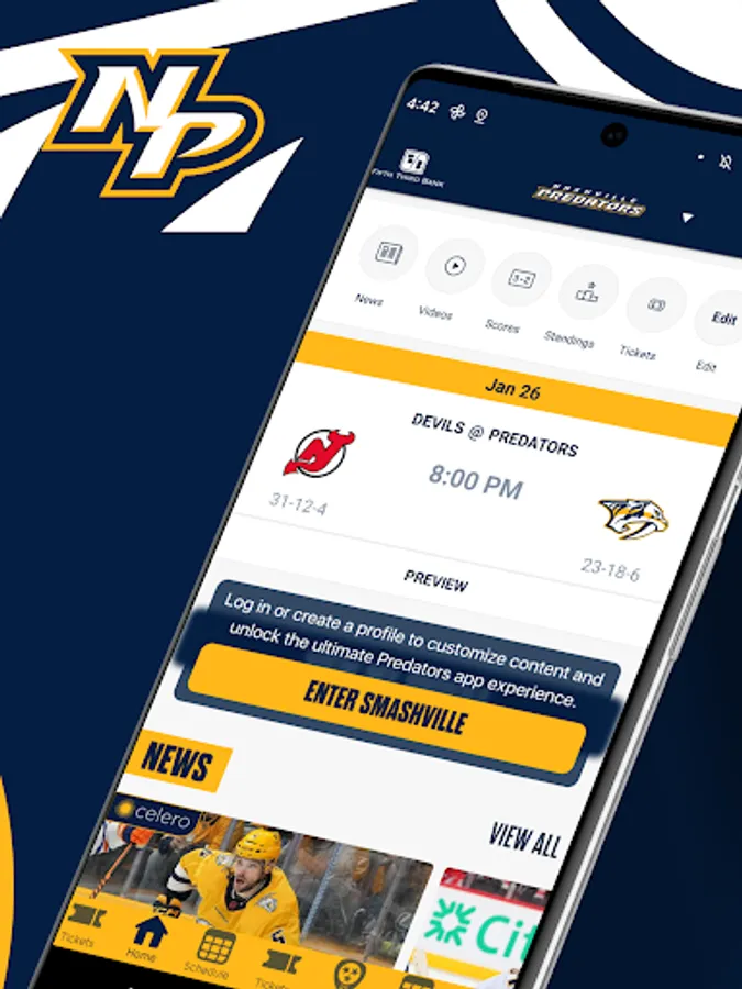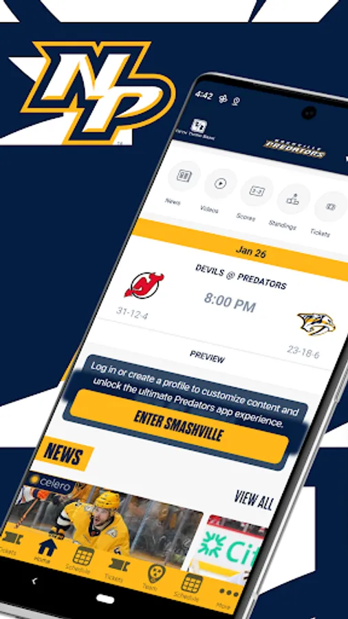 This is the official mobile app of the Nashville Predators and Bridgestone Arena. Use your Android device to stay connected with the Preds all year long. Team news, real-time statistics, video highlights, and more are available just a few taps away. Also, buy and manage tickets for concerts and events at Bridgestone Arena.