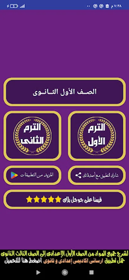 The application provides explanations, reviews, and summaries (videos and notes) for all subjects for the first secondary grade