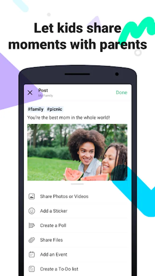 - With BAND for Kids, adolescent users can publish posts on the Community Board and attach files, images, or videos to the posts. They can also chat with other members of their Bands.