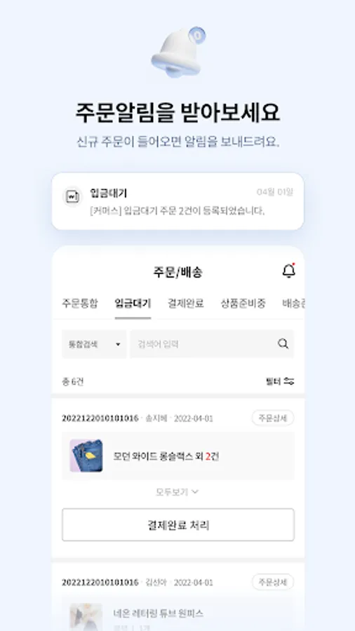 - You can check the order list and order details by status, from the integrated order list to the purchase confirmation list. You can enter the invoice number and process the order at once.