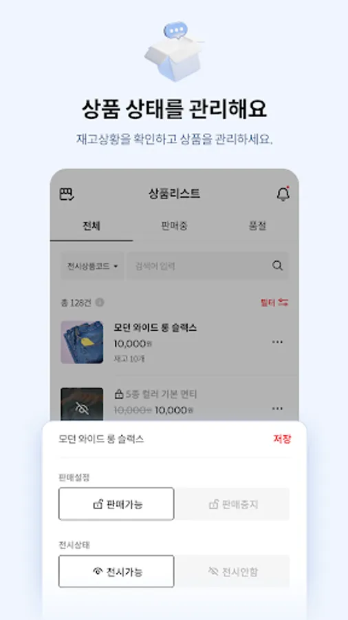 - You can change the status of registered products. You can change the status of a product at any time when you need to abruptly stop selling a product, or when you want to temporarily suspend an exhibition in a shopping mall.